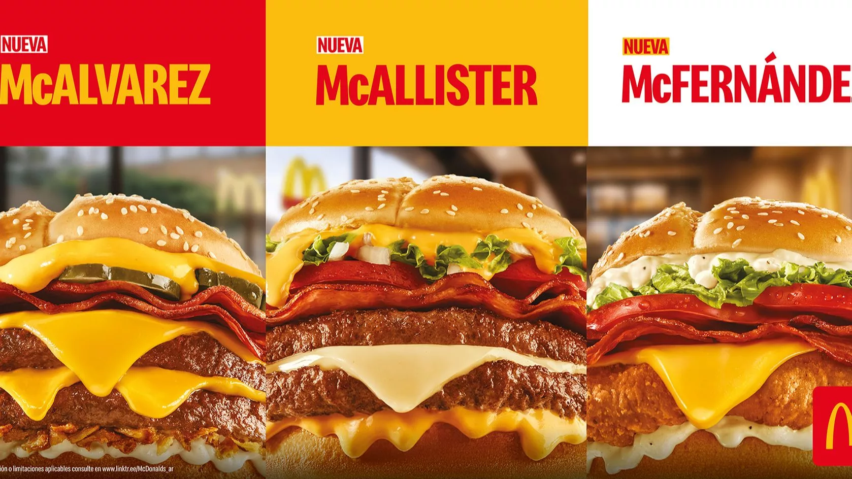 La McAllister, disponible en versión simple y doble, incluye salsa Mequinesse, bacon, cebolla, lechuga, tomate y queso cheddar blanco. La McÁlvarez, también en versiones simple y doble, suma salsa Cheddar Melt, bacon, pepino, queso cheddar, cebolla crispy y salsa Ranch. Por su parte, la McFernández de pollo presenta una propuesta crocante con pollo crispy, salsa Ranch, bacon, lechuga, tomate y queso cheddar. Además, todos los combos pueden ser acompañados de Papas Bravas, una nueva edición de un clásico de la marca, esta vez con salsa brava y bacon.