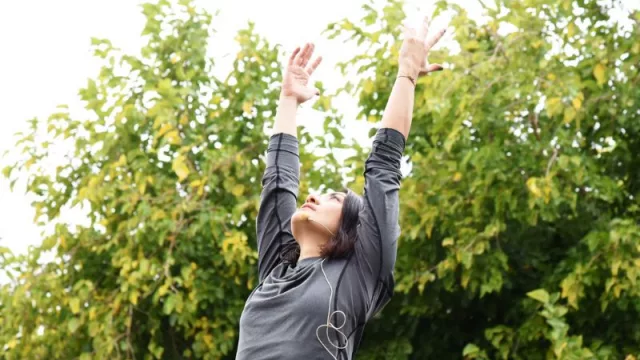 La profesora Catalina Carrasco estuvo a cargo de la clase en la que combinó técnicas de respiración, estiramiento, meditación y relajación.