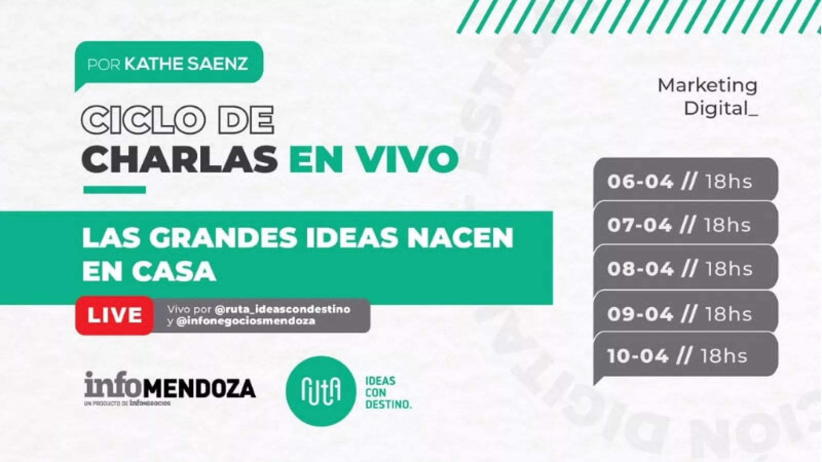Aprovechando el espacio de la cuarentena preventiva para combatir la pandemia de COVID-19, InfoMendoza y Ruta Publicidad le acercan al público un espacio especial para aprender y poder explotar al máximo todos las herramientas que nos ofrece la comunicación y el marketing digital, para utilizar en cualquier empresa.