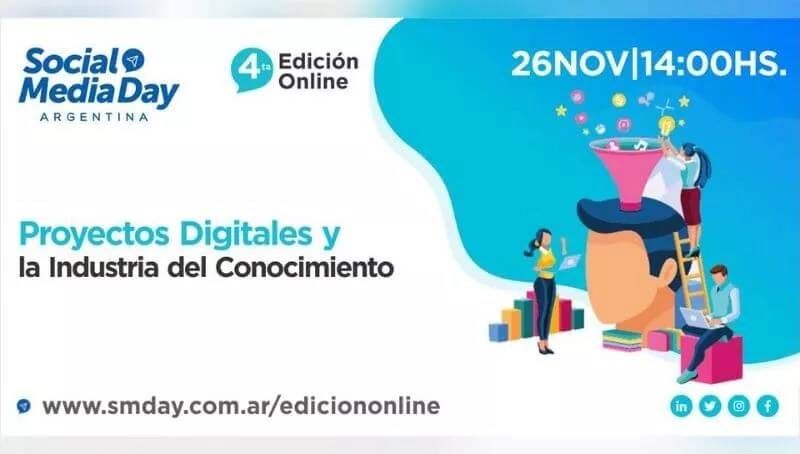 El jueves 26 de noviembre de 14 a 19 hs, se realizará la 4° Edición del Social Media Day cuyo eje temático será “Proyectos Digitales y la Industria del Conocimiento”. En el encuentro federal y online se debatirá acerca de las transformaciones en la comunicación digital, uso de redes sociales y las nuevas estrategias de contenidos, digital commerce, publicidad, marketing y nuevos negocios.