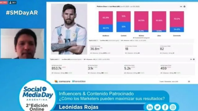 En números, Leónidas Rojas, Senior Director para Conosur en Comscore, señaló que se consumen 81.600 millones de minutos promedio por mes en redes sociales en la Argentina y que durante junio se generaron en Facebook, Twitter e Instagram 193 millones de interacciones, 565 mil publicaciones y 35 mil videos. En cuanto al contenido patrocinado, Rojas precisó que en Facebook representa apenas el 2,1% de las publicaciones, por lo que “se trata de un espacio en el que todavía hay oportunidades”.