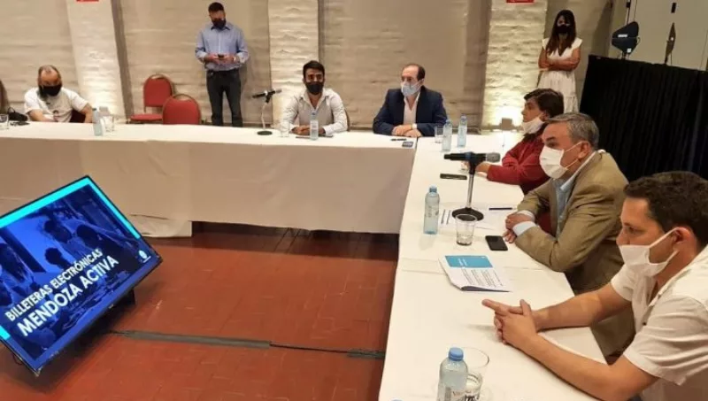 El ministro de Economía y Energía, Enrique Vaquié, junto a su par de Cultura y Turismo, Mariana Juri, se reunieron con las cámaras que nuclean a los empresarios del sector, para delinear estrategias en busca de un mayor uso de los créditos de consumo, que a través de las billeteras electrónicas, tienen los beneficiarios del programa Mendoza Activa.