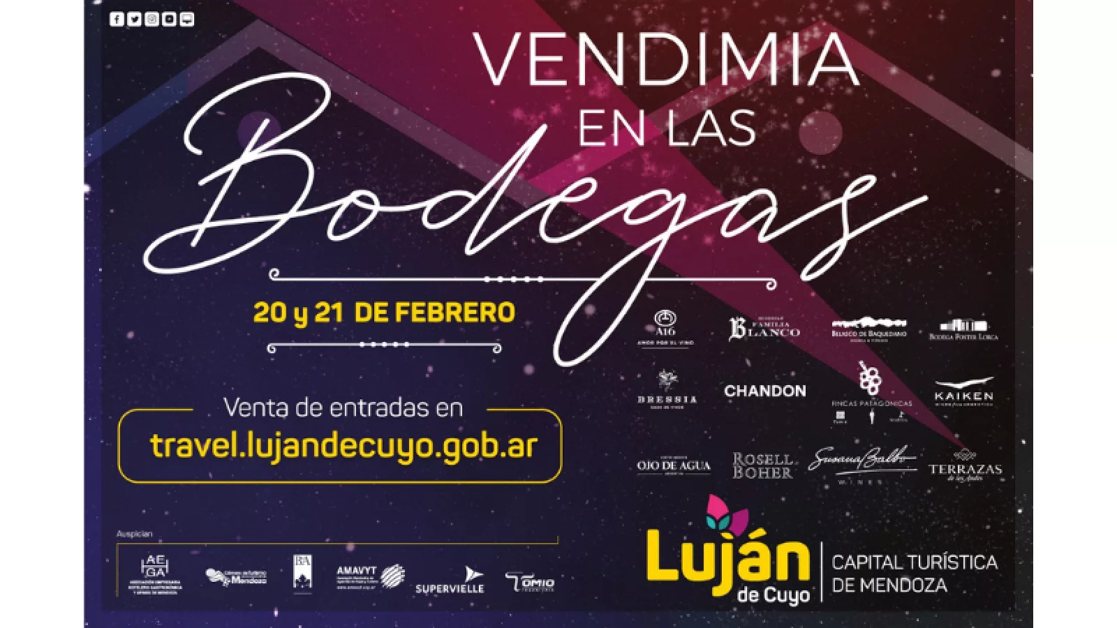 Las entradas están a la venta en el portal travel.lujandecuyo.gob.ar. El costo de los tickets, consensuado con todas las bodegas intervinientes, es de $1200 he incluye estacionamiento, gastronomía, show de artistas mendocinos y la Fiesta de la Vendimia “Volver a Enamorarse” (cupos limitados por protocolo sanitario).