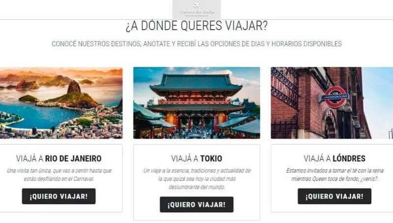 Viajarencasa.com ya cuenta con varios tours disponibles y está trabajando en muchos otros. Río de Janeiro, Nueva York, Tokio, Barcelona y Londres son los primeros destinos, pero se sumarán en breve nuevos como París, Lisboa, Madrid y Sydney entre otros.
