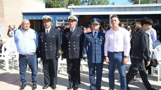 También estuvo el intendente de Guaymallén, Marcos Calvente, el jefe de operaciones de la cuarta Brigada Aérea Mayor Francisco Remersaro, el delegado naval de Mendoza, suboficial principal Julio Quiroga, la supervisora de la sección 2, profesora Silvina Mesa y la directora de la D’Angelo, Lourdes Sánchez.