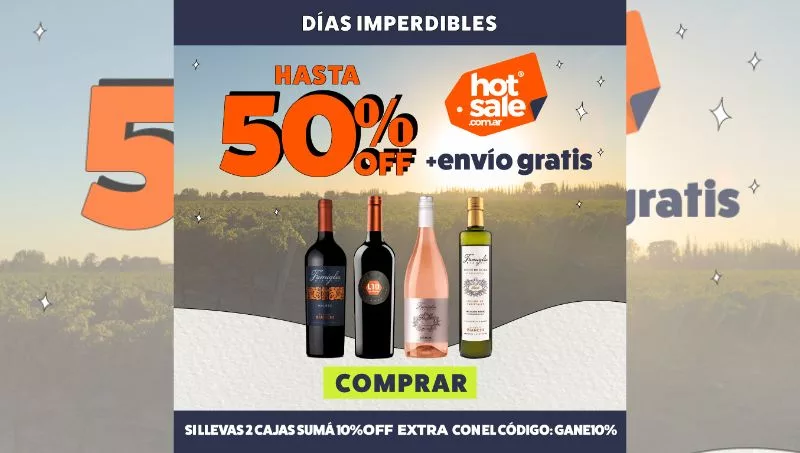 A estas imperdibles propuestas se suman este año el envío gratis sin mínimo de compra en 24hs en CABA y AMBA; y por supuesto, los más esperados lanzamientos exclusivos para el Hot Sale: el regreso del vino “L10 Premium”, el vino del Campeón. Un Malbec tope de gama elaborado con uvas de Valle de Uco y San Rafael.