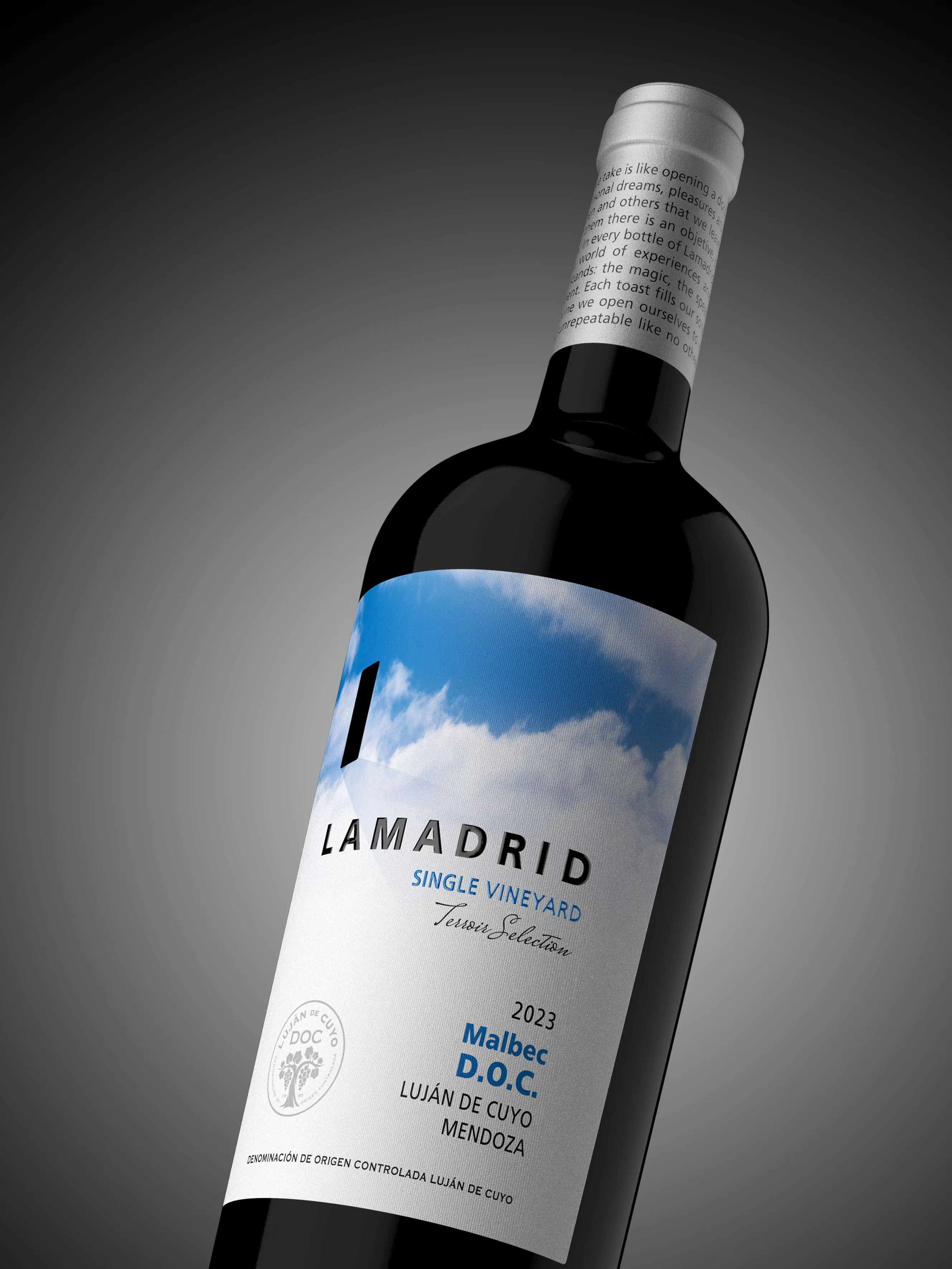 Uno de los exponentes destacados de la renovada Terroir Selection es el Malbec DOC Luján de Cuyo 2023, un vino con certificación Denominación de Origen Controlada (D.O.C.) Luján de Cuyo, sello que garantiza su procedencia de viñedos 100% de Luján de Cuyo, región exclusiva de este terroir mendocino, reafirmando la autenticidad y calidad del proyecto Lamadrid.