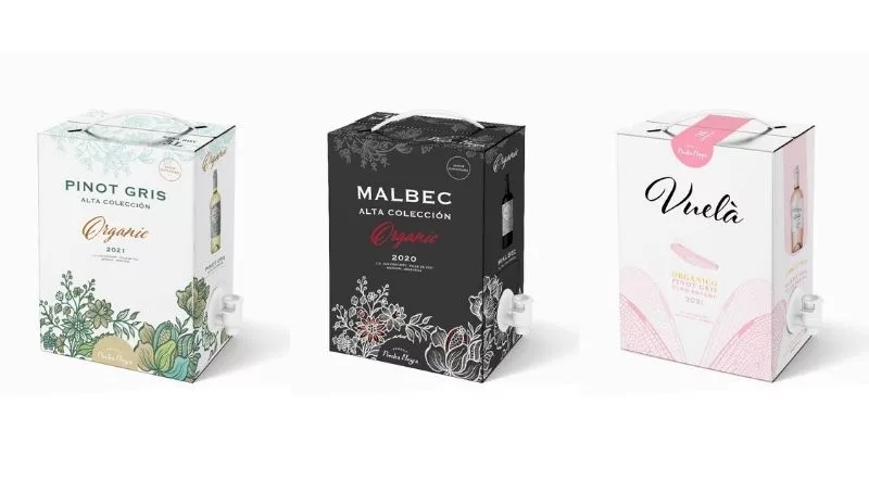 La línea elegida de vinos para el Bag in Box ha sido especialmente seleccionada por la bodega y se trata de Alta Colección y Vuelá, dos líneas de alta gama elaboradas con uvas provenientes de la finca orgánica de la prestigiosa zona de Los Chacayes, en donde la bodega propone a aquellos consumidores que les gusta disfrutar de un vino Premium, de alta calidad y orgánico, la posibilidad de tomar una copa de estos vinos en óptimas condiciones todos los días y desde un solo envase que tiene una durabilidad de 60 días. La Colección Bag in Box incluye: Pinot Gris Alta Colección Organic 2021, Vuelà Orgánico Pinot Gris Rosado 2020 y Malbec 2020 Alta Colección Organic 2020.
