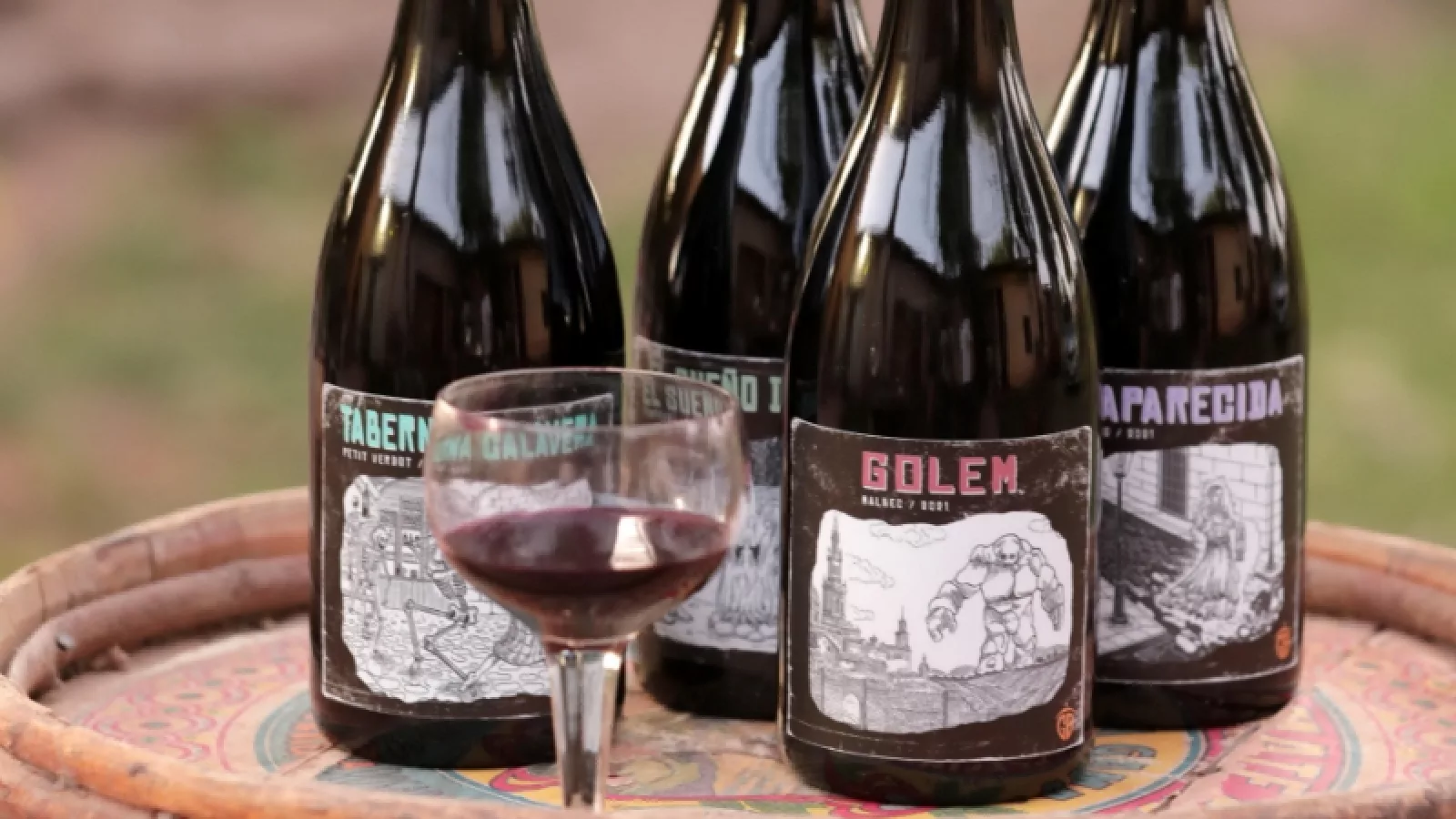 Golem es el gigante y está representado por uvas malbec y cabernet franc, con un carácter robusto, expresivo y mineral aportado por el suelo pedregoso y calcáreo.