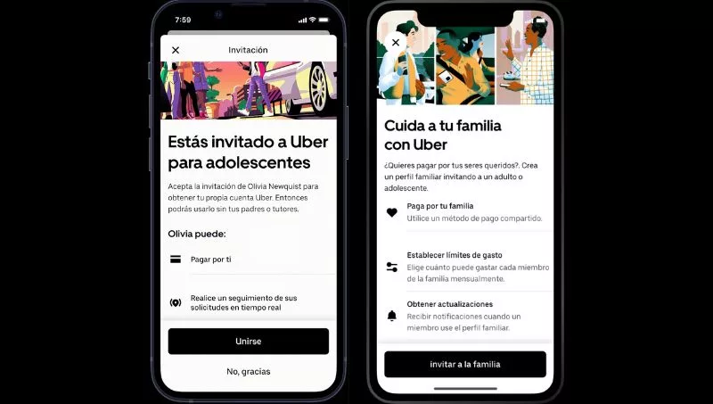A través del Perfil Familiar en la aplicación de Uber, un padre, madre o tutor puede invitar a su hijo/a adolescente a crear una cuenta. El adolescente recibirá un link de la app de Uber para crear su cuenta de Uber Teens y completar el registro de seguridad. Una vez que se confirme el registro, el adolescente está listo para comenzar a solicitar viajes.