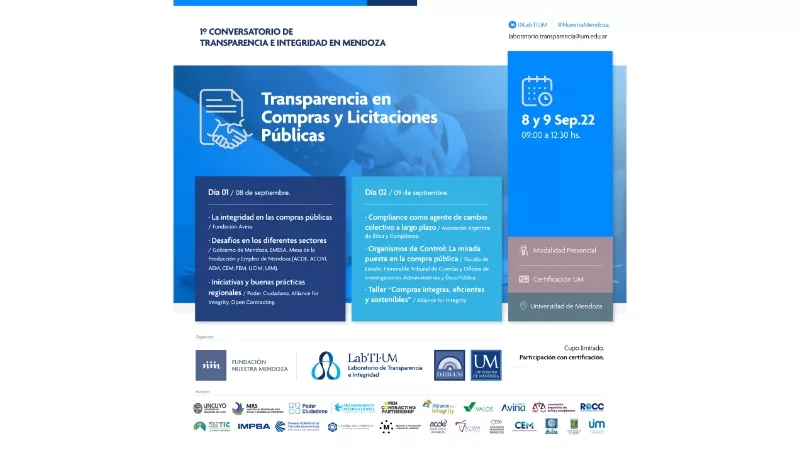 Por su parte, el Director de Fundación Nuestra Mendoza, Lic. Facundo Heras, dijo que "articular con los diferentes actores es el camino para enfrentar los desafíos que tenemos en la Provincia, en materia de transparencia. El Conversatorio, también nos va a permitir sumar la experiencia y buenas prácticas de otras comunidades en el mundo, a través de las miradas de las organizaciones con alcance internacional como Poder Ciudadano, Alliance for Integrity y Open Contracting".