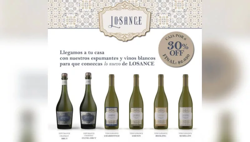 4-LoSance, la champañera de los hermanos Sance invita a abrir la propuesta y además de sus espumantes ofrece una interesante línea de blancos entre los que se encuentran: Riesling, Chardonnay, Semillon y Chenin y llegan a domicilio junto dos Brut Nature para completar el pack.