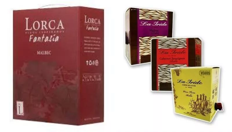 Bodega La Íride ofrece en su portfolio este formato y la describe como bolsa de plástico inerte homologada para la industria alimenticia, con válvula de expendio, contenida dentro de un estuche de cartón. Tiene capacidades 5 litros y 3 litros y se encuentran los varietales Malbec Roble y Cabernet Sauvignon Roble, además de la opción «Cortes de Autor». Estos vinos de excelente calidad, comparables a los presentados en botellas, y ventajoso precio, se presentan en este novedoso envase que impide la entrada de aire a medida que se dispensa el líquido, no permitiendo de tal modo el deterioro del vino remanente. Claudio Ricchitelli, Gerente comercial de Bodega la Íride aseguró que no compiten con la damajuana porque son públicos diferentes.