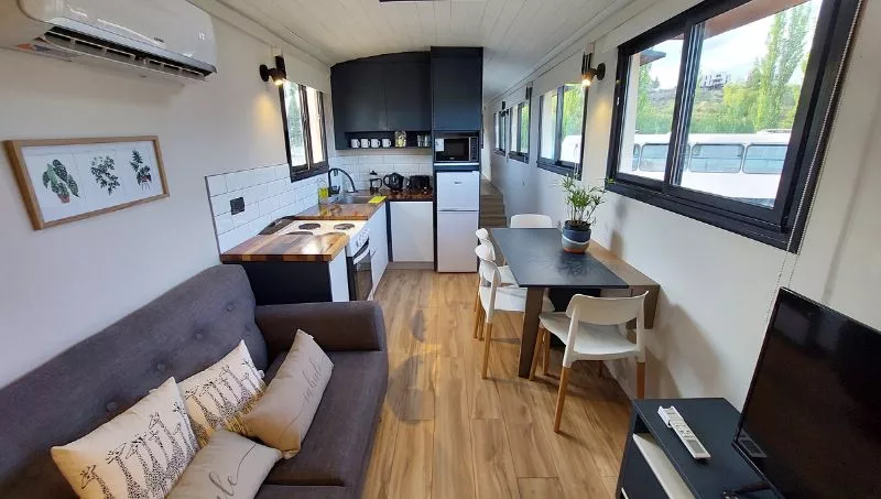 “El cual pueda albergar a huéspedes de todo el mundo y que estos vivan una experiencia de vacaciones única, durmiendo dentro de colectivos en desuso transformados en tiny houses de lujo, y un jardín con piscina pensado principalmente en cada detalle (paisajismo de plantas autóctonas y xerófilas alimentadas por riego por goteo, aprovechamiento de recursos, diversidad de materiales naturales de la zona, espacio de recreación pergolado, y espacio de fuegos)”, explicaron los emprendedores. El complejo está formado por 3 autobuses, y en la actualidad se está realizando la construcción del tercero. Este tercer modelo va a ser formato loft.
