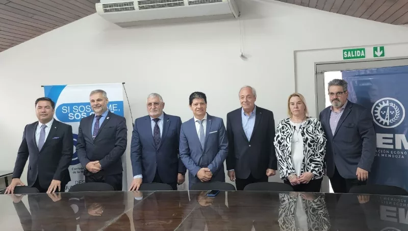 Una comitiva de la Confederación Argentina de la Mediana Empresa (CAME) encabezada por su presidente, Alfredo González y su Secretario General Ricardo Diab, se reunió hoy en la sede de la FEM con autoridades y directivos de la cámaras territoriales y sectoriales de la provincia, a fin de analizar los distintos temas que preocupan a pymes, comercio y sector productivo mendocino. También fueron parte de la jornada los Vicepresidentes Fabián Castillo (FECOBA) y Claudia Fernández (Cámara de Comercio de Ushuaia) y el Secretario de Hacienda Blas Taladrid (UCIP).