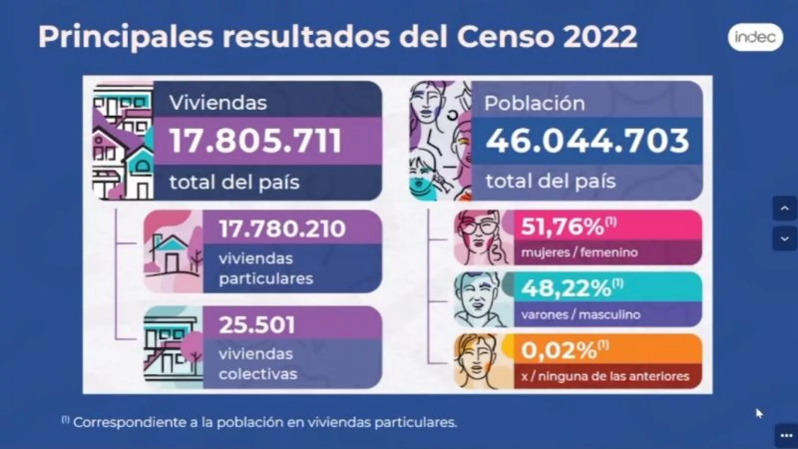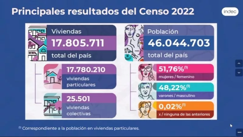 Datos salientes a nivel nacional que deja el resultado provisorio de este censo 2022