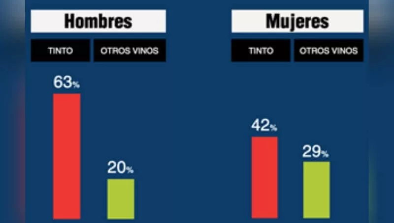 Según el informe, las mujeres muestran una preferencia más equilibrada entre tinto, blanco y rosado. Así, mientras el 63% de los hombres que consume vino, elige tinto y sólo el 20% “otros vinos”, en el caso de las mujeres la brecha es menor, ya que el 42% de las mujeres toma o prefiere el vino tinto, contra un 29% que elige otros vinos.