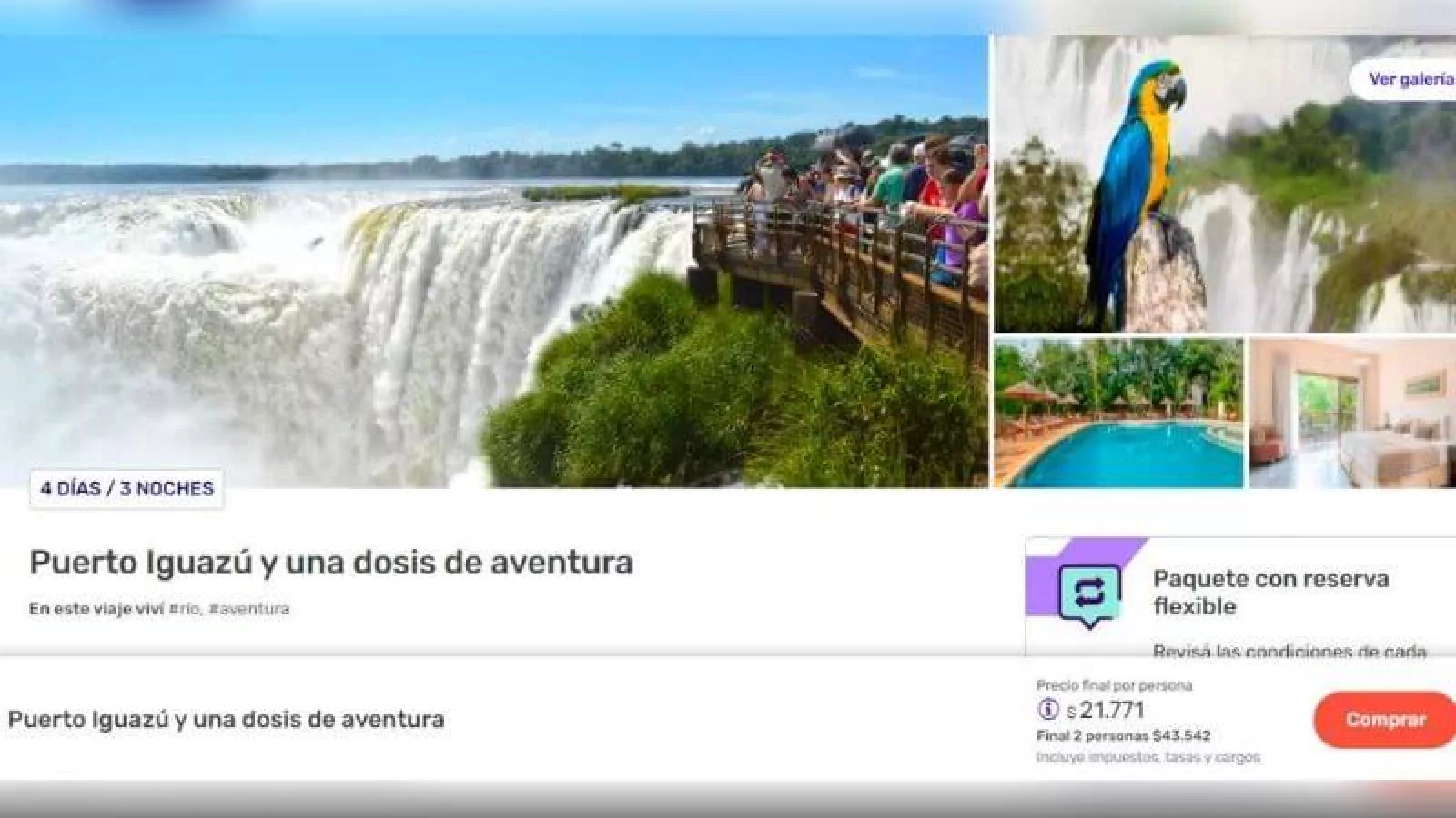También incluye los traslados y una excursión. El precio final por persona es de $ 21.771 y se puede pagar en cuotas.