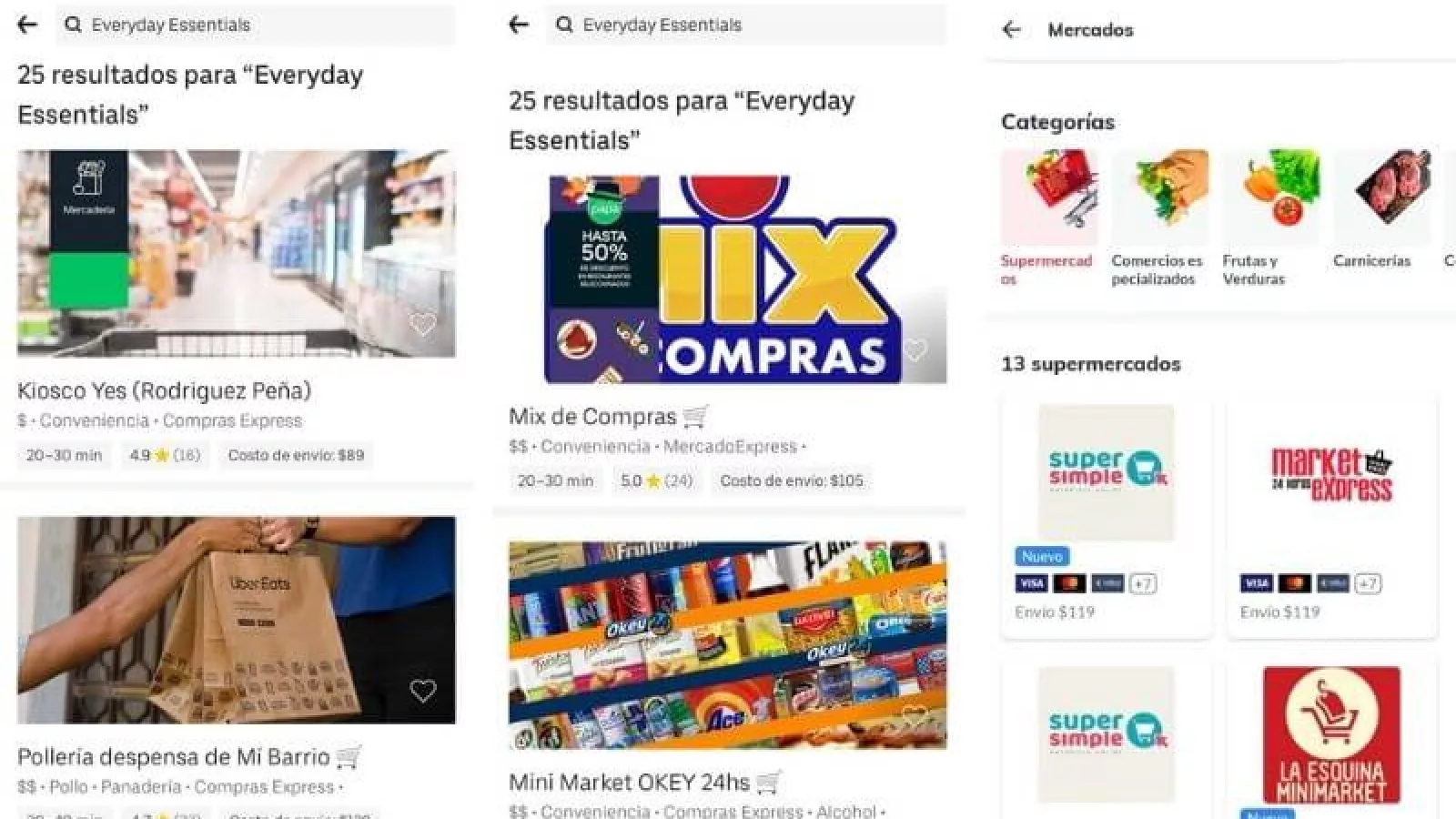 A diferencia con la anterior, esta app no cuenta con cadenas de supermercados en su haber (por lo menos en Mendoza), pero esto no es una desventaja, ya que ofrece en su apartado “Mercado Exprés” una mayor cantidad de tiendas polirubro donde tranquilamente se pueden hacer las compras para la semana.