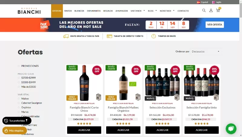 El comercio online de vinos sigue creciendo en Argentina y el Hot Sale es uno de los puntos fuertes del año. Más de 1.000 empresas de distintos rubros se suman a esta iniciativa y Bianchi, una de las bodegas que lidera la venta de vinos por internet en nuestro país, participará con algunas de sus etiquetas más reconocidas como la línea Famiglia y los exclusivos de e-commerce: Oasis, Mil Piedras, Génesis y Famiglia Bianchi Corte Único.