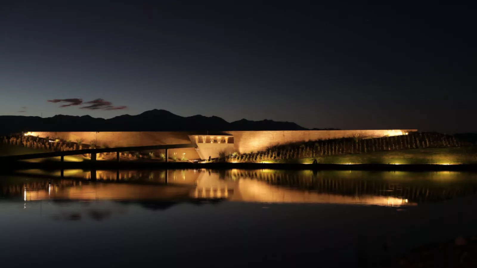 “Tanto la bodega como la vivienda forman parte de un conjunto que dialoga entre sí, donde las visuales hacia la Cordillera entre lagunas de riego utilizadas escenográficamente, permiten un juego de imágenes, reflejos y sonidos del agua que recuerdan que Anaia pertenece al sistema del oasis central de Mendoza, donde el agua como recurso cumple un rol fundamental y a la que se homenajea. El diseño de la bodega está inspirado en la tierra y el paisaje de Mendoza; en su topografía de montañas; en la flora xerófila de sus cerros; en la textura y el color de sus rocas milenarias, y en el cambio de tonalidades terrosas, que responde a distintos estratos que fueron sedimentando a través de miles de años”, comenta el arquitecto Gabriel Japaz.