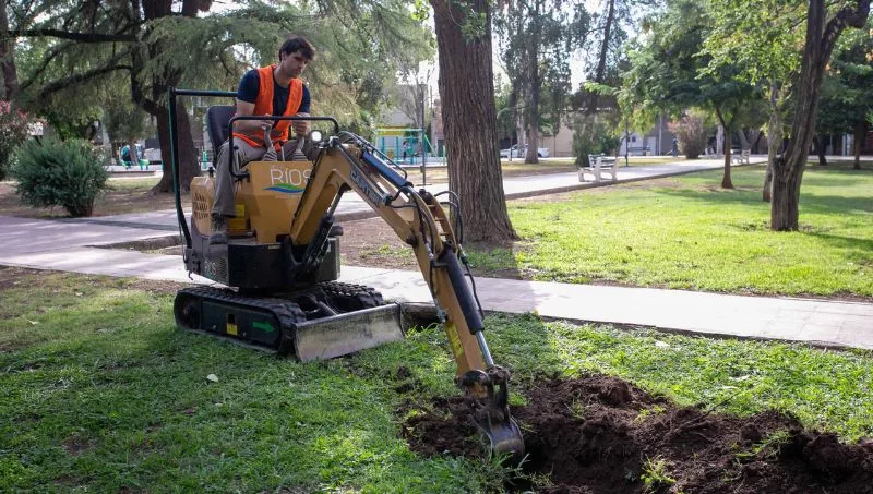 Por su parte, el Plan de Mejoramiento de Espacios Verdes representa una transformación profunda en el modo de gestión del arbolado y la vegetación urbana. Esta iniciativa promueve el paso de sistemas tradicionales de riego a métodos tecnificados y por aspersión, lo que permite duplicar la eficiencia hídrica -elevándose del 40% al 80%-, con beneficios tanto ambientales como operativos.
