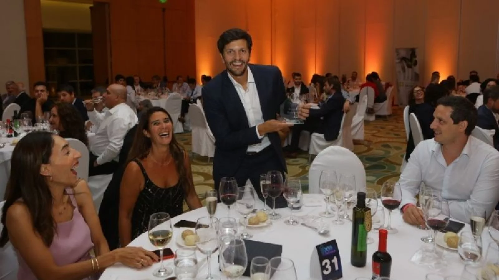 A las 22 hs las puertas del salón principal se abrieron y los invitados fueron acomodándose en las mesas elegantemente montadas que contaban con aceto balsámico y aceite de oliva de una de las empresas sponsors y nominadas, Olivícola Laur. Posteriormente se sirvieron vinos de Bodegas Bianchi y comenzó el servicio de cena.