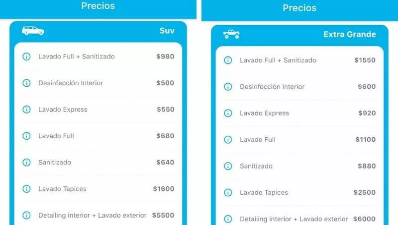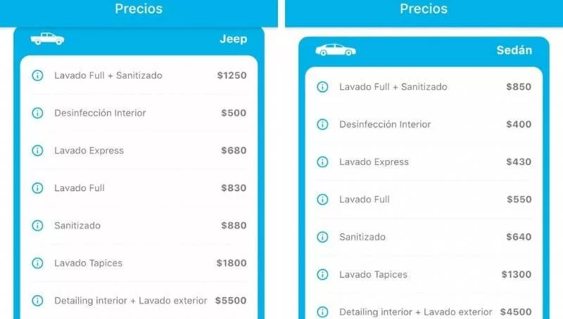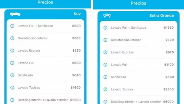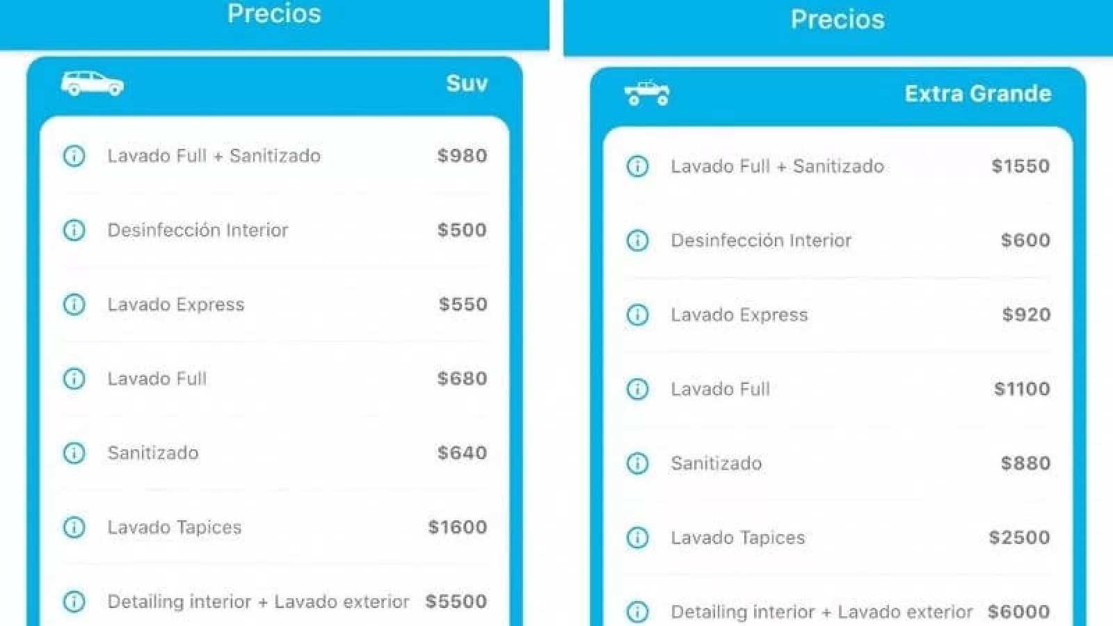 En la aplicación que se baja al celular, hay diferentes precios según el tipo de lavado. Así, uno express cuesta $430, mientras que el full (el más requerido por los mendocinos) cuesta $550. “Los precios son similares a los de un lavadero tradicional, pero la calidad del lavado es superior porque tenemos en cuenta muchos detalles del vehículo. Por ejemplo revisamos y dejamos en buen estado la guantera, el retrovisor, el parasol, y tenemos un servicio de limpieza profunda con vapor seco”, comentó López.