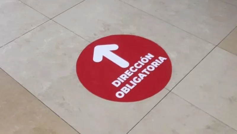 En el caso del Mendoza Plaza Shopping en los pasillos hay carteles de circulación obligatoria, con flechas que indican el sentido de circulación. De ese modo, se logra un desplazamiento con distanciamiento de las personas.