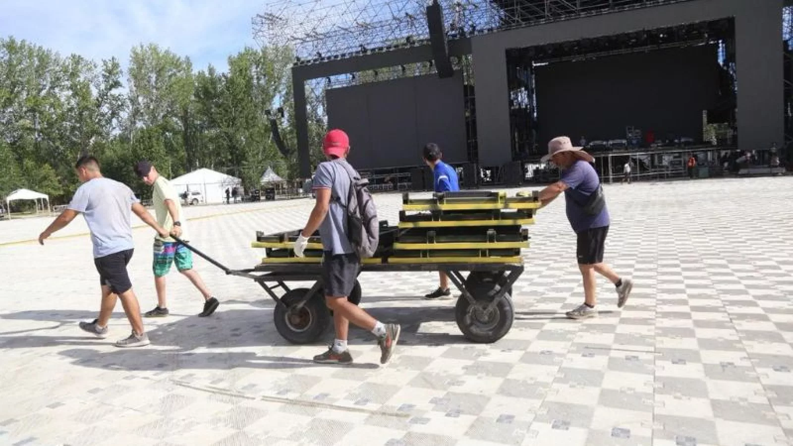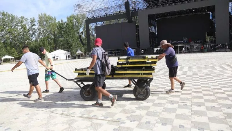 Allí, destacó que desde hoy se comenzó con el montaje de las pantallas que van a lo largo del espacio delimitado para los espectáculos principales “porque la Confluencia es una fiesta familiar y muchos se sientan en esas áreas donde se puede disfrutar desde las pantallas con un gran sonido”.