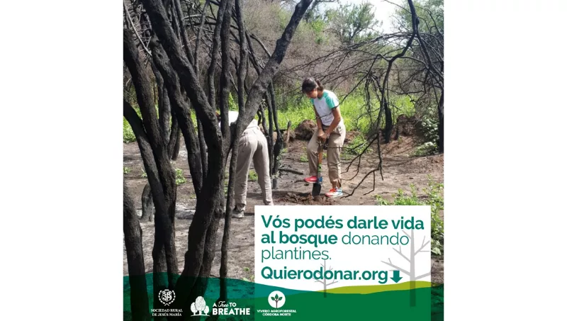 Dirigida por los mendocinos Luciana Rosas y Roberto Drazich, la Fundación "A Tree To Breathe" ya lleva plantados más de 6.2 millones de árboles en distintas partes del mundo. Junto a la SRJM, el desafío ahora será reforestar los campos del norte de Córdoba arrasados por los incendios.