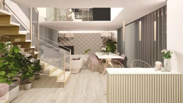La firma de Matías Merino ha ideado que Andro sea de tres pisos más la planta baja y la terraza. Dispondrá de 24 departamentos de doble altura con balcones y/o amplias terrazas propias. Cada espacio tendrá su nombre (Geno-Meda- Ginia). En la planta baja habrá cocheras, taller de motos y locales comerciales.