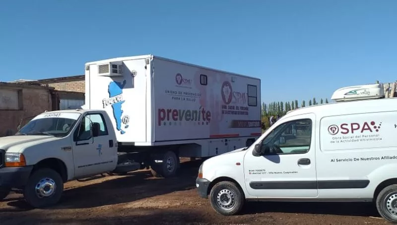 El camión hizo el recorrido en Tupungato, luego pasó por Guaymallén y Lavalle y la próxima semana estará en Luján de Cuyo y luego en San Carlos. “El objetivo es que pasemos por la mayor cantidad de fincas y todos los trabajadores puedan acceder a su chequeo médico” explica Aguirre. El camión proyecta realizar este recorrido una vez por año.