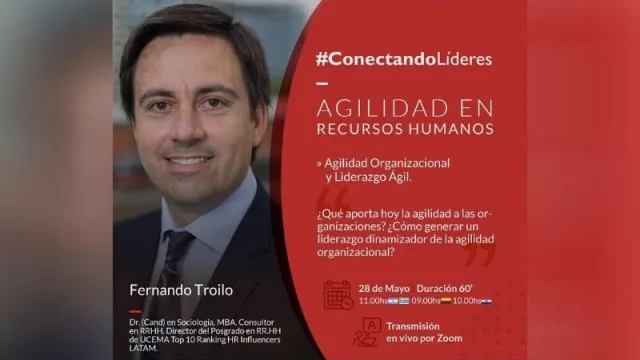 La primera parte del evento virtual contará con la presencia de la disertación de Fernando Troilo, Doctor en Sociología (c.), MBA, consultor en Recursos Humanos, y director del Posgrado en Recursos Humanos de UCEMA que abordará el disparador “¿qué aporta hoy la agilidad a las organizaciones? y ¿cómo generar un liderazgo dinamizador de la agilidad organizacional?”.