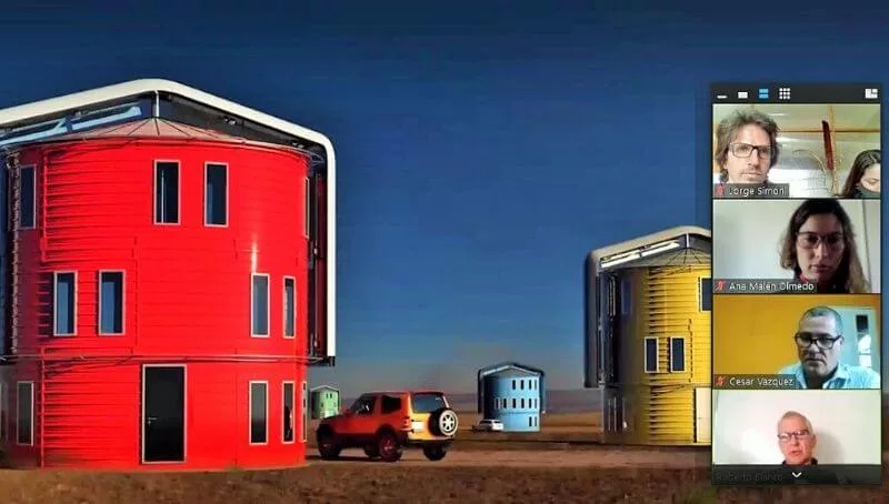 Esta reunión por videoconferencia fue en el marco de los trabajos que se están desarrollando en el Laboratorio de Vivienda y participaron el subsecretario de Obras Públicas, Jorge Simoni, y la directora de Arquitectura e Ingeniería, Verónica Fader. Los acompañaron miembros de la empresa nacional Tango Winds.