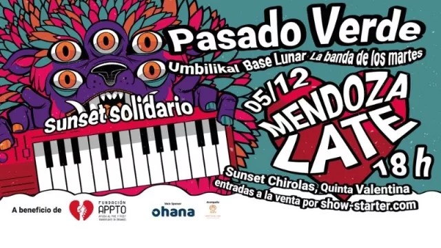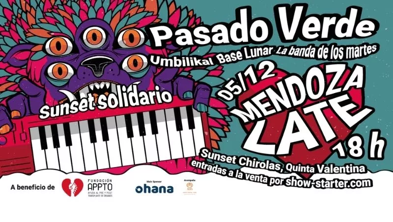 Por segundo año –aunque no consecutivo, debido a la pandemia- vuelve Mendoza Late, el festival de bandas organizado por Fundación Appto con el fin de concientizar sobre la importancia de la donación de órganos, difundir la temática y acercarla a la comunidad de jóvenes. Durante el evento tocarán en vivo Pasado Verde, Umbilikal, La Banda De Los Martes y Base Lunar, y los fondos recaudados serán destinados a las distintas acciones que realiza la institución en Mendoza.