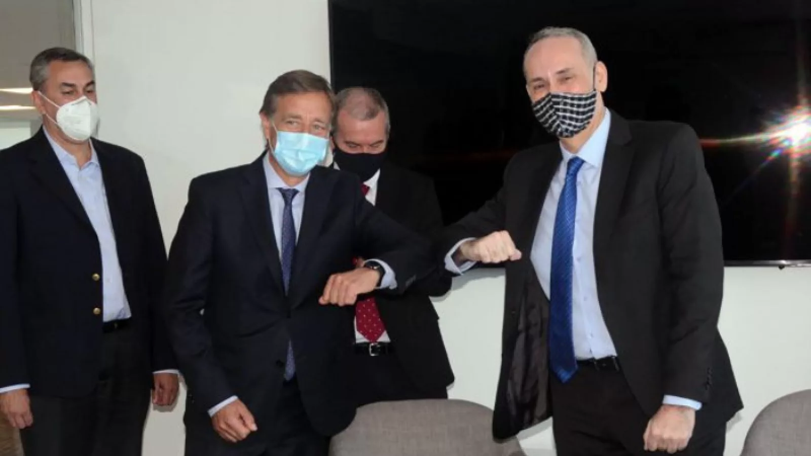 El Gobernador, Rodolfo Suarez, junto al ministro de Economía y Energía, Enrique Vaquié y el subsecretario de Energía y Minería, Emilio Guiñazú, se reunieron en Buenos Aires, con los representantes legales de la empresa VALE, para firmar la transferencia definitiva de la mina Potasio Río Colorado a la provincia de Mendoza.