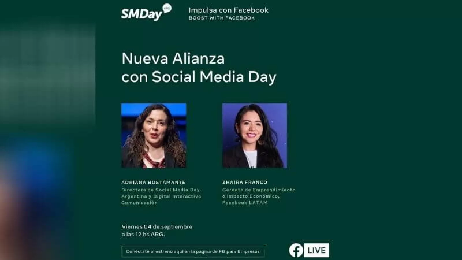 Social Media Day Argentina y Facebook sellaron una alianza nacional para continuar impulsando el desarrollo de emprendedores de toda la Argentina. Adriana Bustamante, coordinadora general de SMDay, y Zhaira Franco, gerente de Emprendimiento e Impacto Económico de Facebook Latam, serán los encargados de llevar adelante esta iniciativa por Facebook Live el próximo viernes 4 de septiembre a las 12:00, hora argentina.