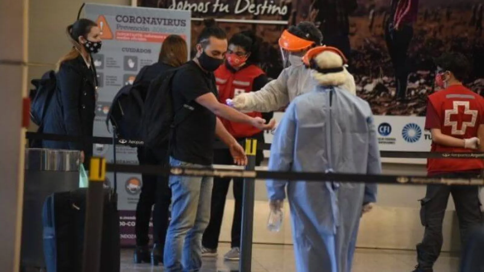Por su parte, el gerente regional de Aeropuertos Argentina 2000, Sergio Rinaldo, comentó: “El aeropuerto se viene preparando, desde hace meses, con los protocolos que son los mismos en todo el mundo. Son los protocolos de OASIS, que es la organización internacional que controla la seguridad en los aeropuertos. Son protocolos básicos, como uso obligatorio de tapabocas y distanciamiento. Tenemos muchas estaciones de alcohol en gel repartidas en los espacios del aeropuerto, mucha comunicación y recomendaciones. No son protocolos muy sofisticados, pero son los que hoy están homologados en todo el mundo”.