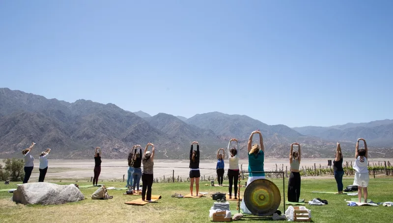 “Renovación de energía a través de posturas de yoga y ejercicios de respiración; inducción a estados de calma y relajación; meditación y sonidos de gong para ser atravesados por vibraciones sanadoras son parte de la vivencia que espera al visitante al llegar a la bodega para luego compartir un brindis con bocados exquisitos y poder así socializar y disfrutar de los placeres gastronómicos que cada establecimiento propone” afirma Alejandra Navarría, comunicadora y profesora de yoga, creadora de Yoga por los Caminos del Vino.
