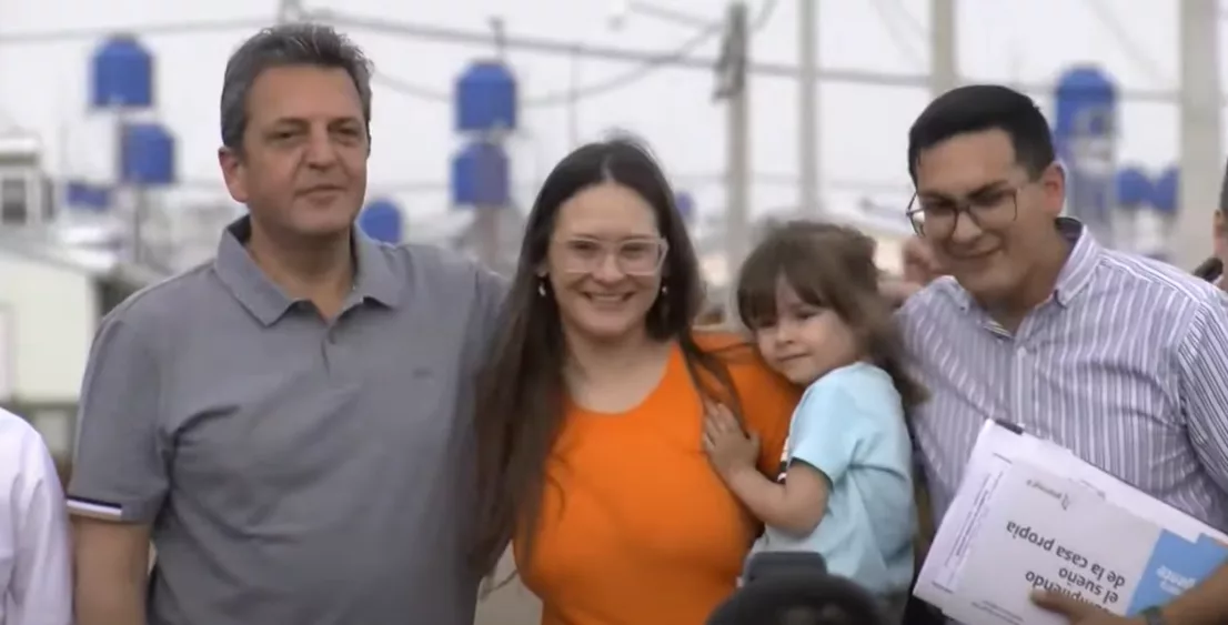 El ministro de Economía y candidato a Presidente de la Nación, Sergio Massa, hace entrega de 180 viviendas familiares que son parte del programa "Casa Propia". Además, firma convenio para la construcción de otra 500 unidades, acompañado del gobernador de la provincia, Oscar Herrera Ahuad.