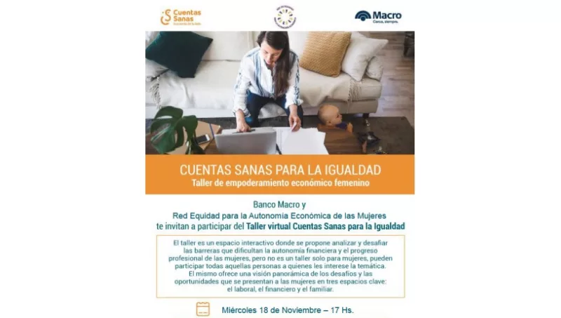 El próximo miércoles 18 de noviembre a las 17 hs se desarrollará virtualmente el Taller Cuentas Sanas para la Igualdad.