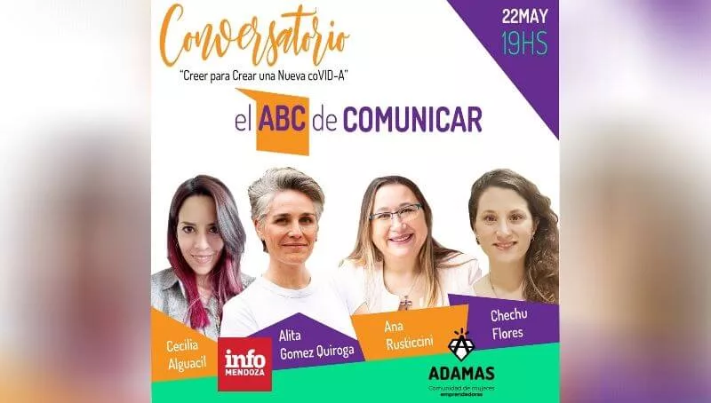 “Te invitamos al Conversatorio #viernesdeADAMAS, donde nuestro equipo de comunicación te da una guía práctica con lo básico para resolver tu comunicación de forma efectiva”, explican sobre este ciclo al que invita InfoMendoza.