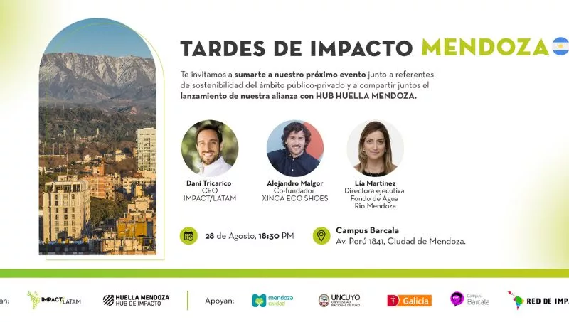 Este lunes 28 de agosto se llevará a cabo el primer encuentro de Huella Mendoza. Será en el marco de Tardes de Impacto, organizado por Impact/LatAm, que se llevará a cabo en Campus Barcala, Perú 1841 de Ciudad, a partir de las 18.30.
