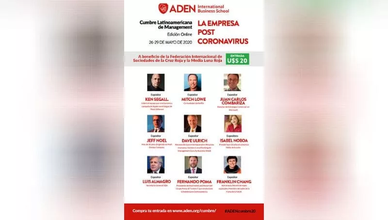 En línea con estas acciones previas, ha diseñado una Cumbre Latinoamericana de Management Online, donde se analizarán las nuevas reglas de juego de un mundo que busca recuperarse del COVID-19. Tendrá un costo por persona: U$S 20, y el valor de las entradas será a beneficio de la Federación Internacional de Sociedades de la Cruz Roja y la Media Luna Roja.