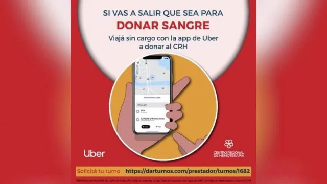 El Ministerio de Salud, Desarrollo Social y Deportes, desde el Centro Regional de Hemoterapia, realizó una alianza con la plataforma Uber. Que permite que los usuarios de la App de Uber que cumplan con los requisitos para donar sangre puedan viajar desde y hacia el Centro de manera gratuita.