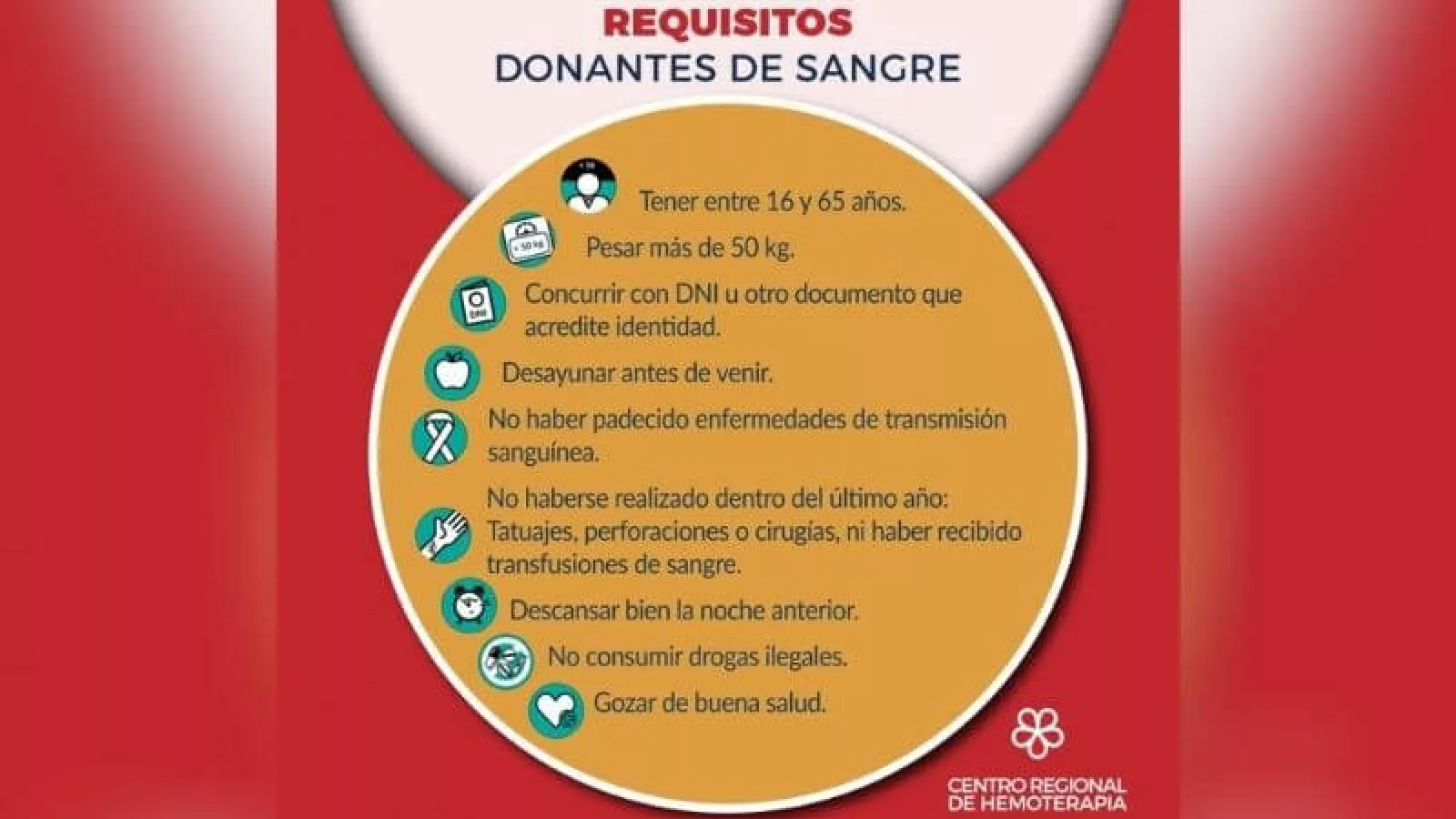 En caso de cualquier consulta, comunicarse con el Centro Regional de Hemoterapia al 4204467, de lunes a viernes de 8 a 15 o a través de sus redes sociales: Instagram.com/crhmendoza y facebook.com/CentroRe